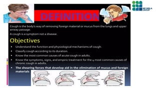 A cough isyour body's reflex to clear irritants like mucus, dust, or germs from your