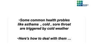 •Infections: Common cold, flu, bronchitis, pneumonia, sinusitis.