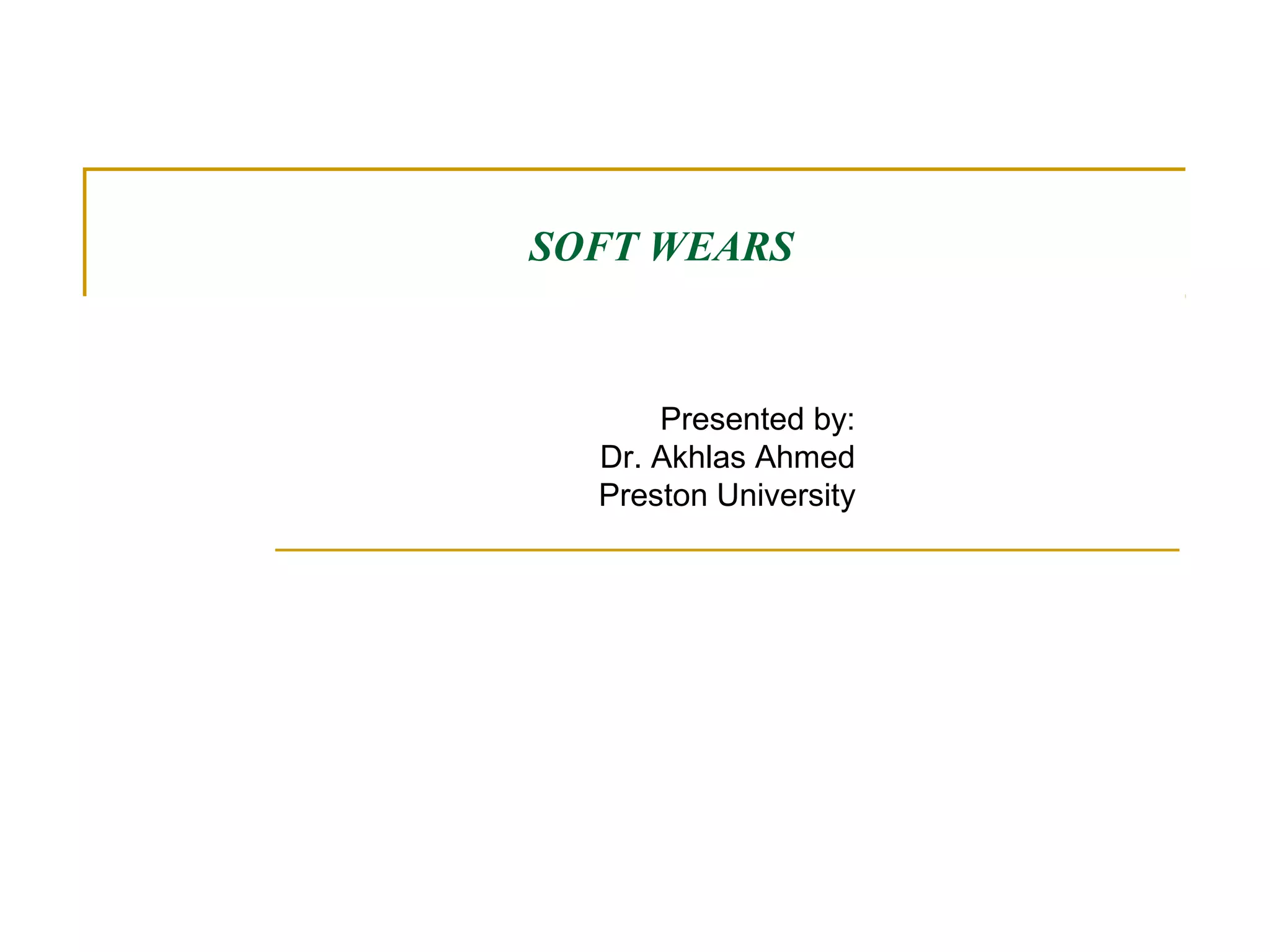 This document discusses different types of software. It defines software as computer instructions or data that can be stored electronically, while hardware refers to tangible components like storage devices, CPUs and displays. It describes system software like operating systems, compilers, loaders and linkers that enable computers to function. Application software includes programs for tasks like word processing, spreadsheets, databases and presentations. The document also distinguishes between open source software with accessible code and proprietary software with restrictions on use and modification.