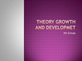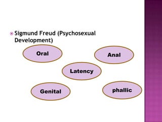 Dokumen ini menjelaskan perkembangan psikologis anak berdasarkan teori Sigmund Freud (perkembangan psikoseksual), Erik Erikson (perkembangan psikososial), Kohlberg (perkembangan moral), dan Jean Piaget (perkembangan kognitif). Setiap teori membagi tahap perkembangan menjadi beberapa fase dengan karakteristik unik, mulai dari masa bayi hingga dewasa. Penekanan pada faktor internal dan eksternal yang membentuk perilaku serta kognisi anak sangat signifikan dalam proses belajar mereka.