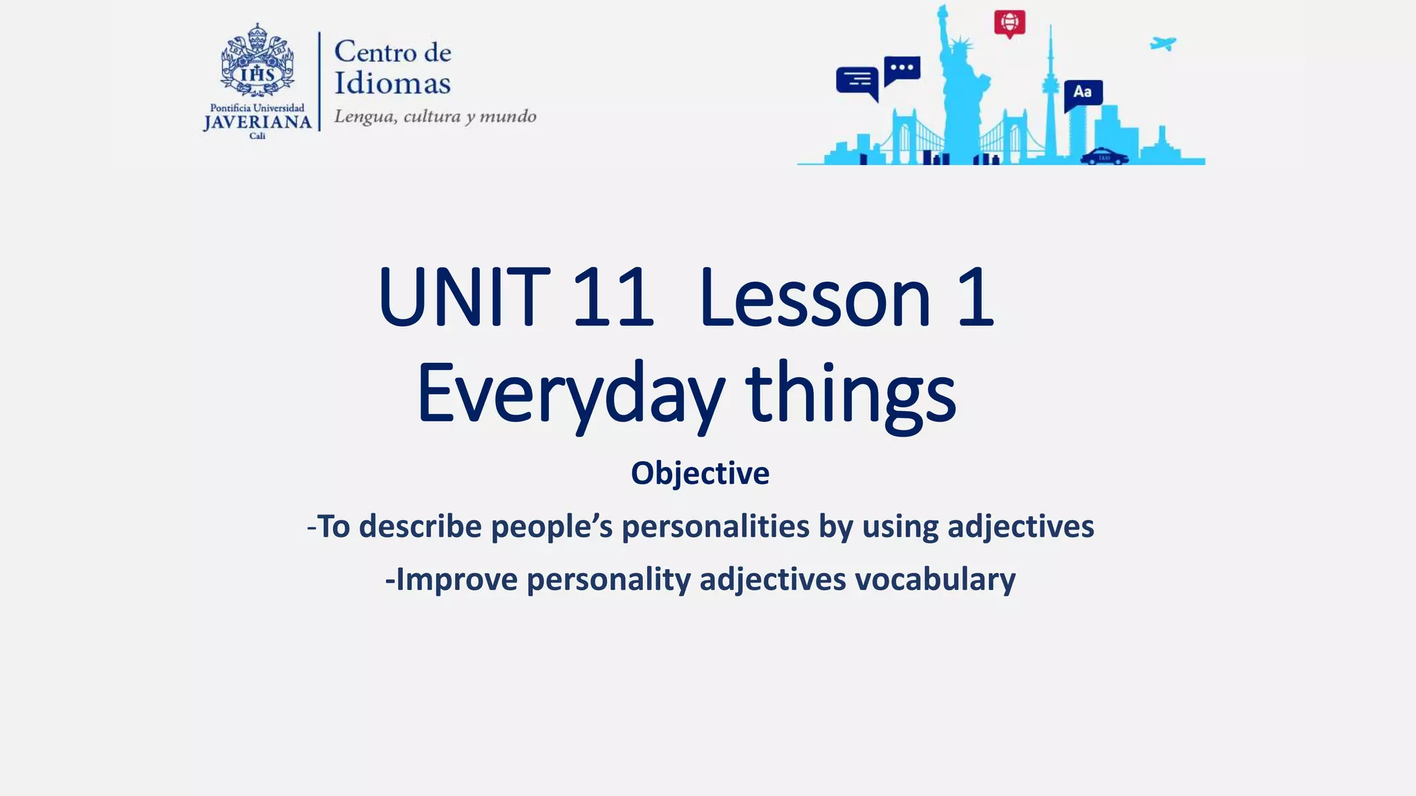 The document provides a lesson plan on describing personality traits using adjectives. It includes activities where students watch a video about James Bond's driving and describe his personality. Students then match personality adjectives with their definitions, describe people they admire using positive and negative traits, and classify different adjectives as strengths or weaknesses. The goal is to improve students' vocabulary for describing personalities.
