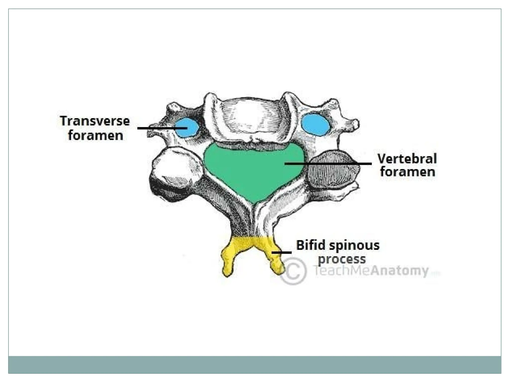 ⚪ bifid spinous process – the spinous process bifurcates at its
