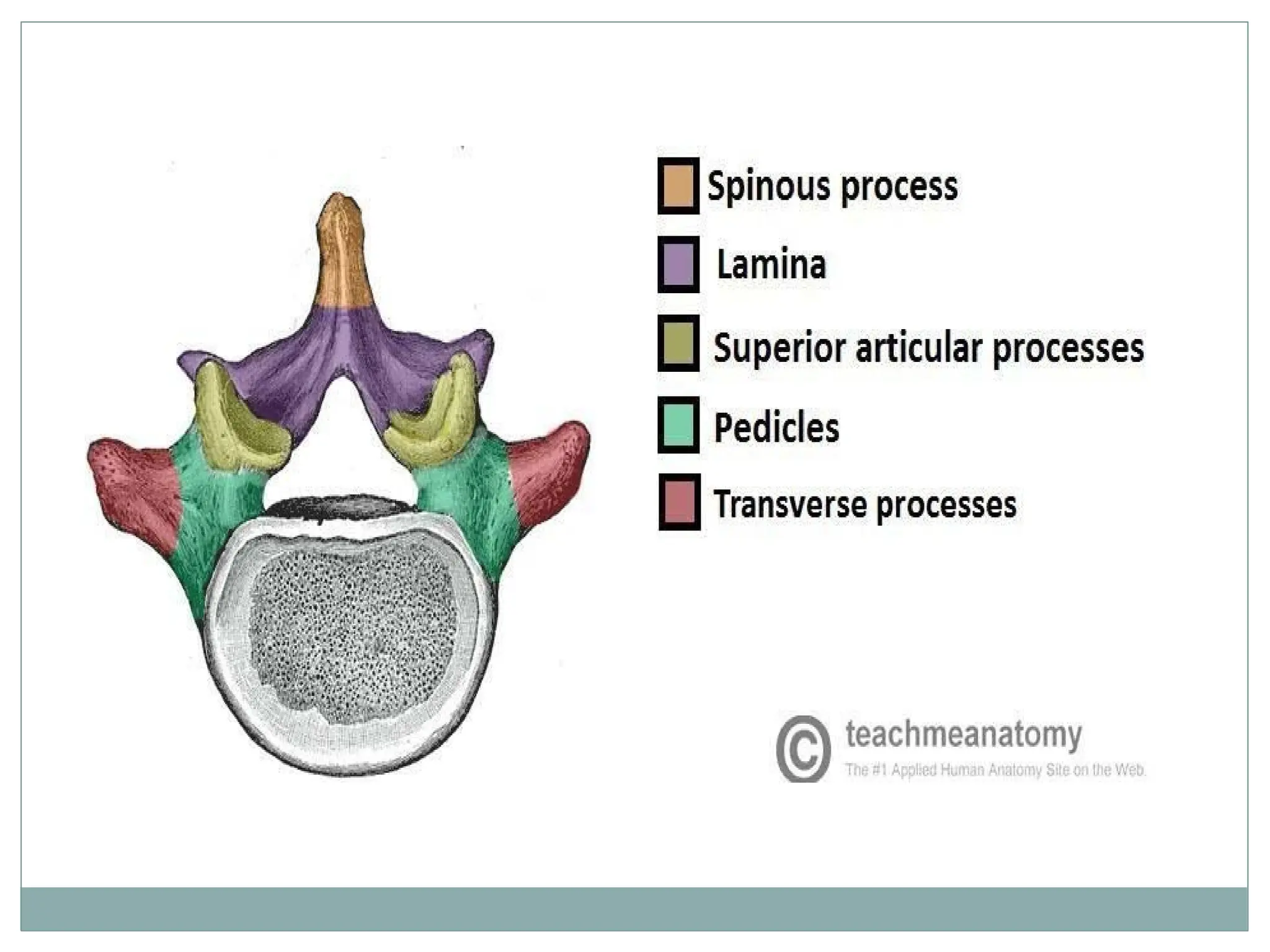 ⚪ their size and orientation allows for clinical access to the spinal canal