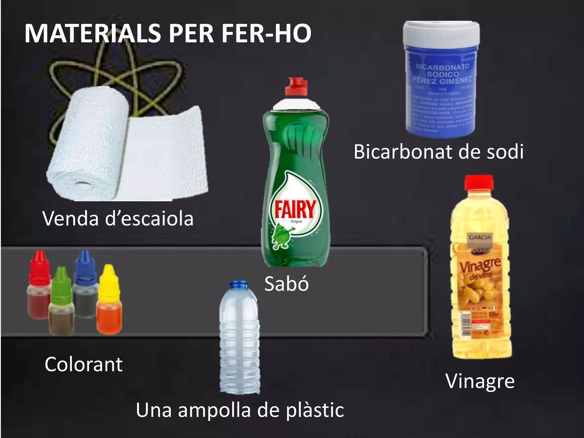 Primer s’ha deconstruir el volcà. Es posa una ampolla de plàstic al mig