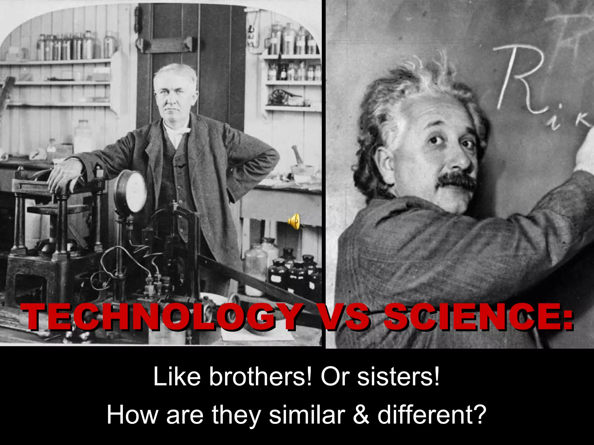 This document discusses the differences between technology and science. It defines science as the accumulation of knowledge to understand why natural phenomena occur, while technology is the application of knowledge to create goods and services. Scientists study various natural phenomena to understand how things work at a fundamental level, while technologists apply scientific discoveries to develop new materials, devices, and systems. Both scientists and technologists work together as a team to push the boundaries of knowledge and its applications. The document also covers human limitations that technology aims to overcome, characteristics of technology, resources needed for technology, and classifications of resources as renewable or nonrenewable.