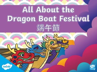 The Dragon Boat Festival is a major Chinese holiday held annually on the fifth day of the fifth month of the lunar calendar to commemorate the poet Qu Yuan, featuring dragon boat racing as the main activity. Celebrations include eating rice dumplings, hanging mugwort and calamus leaves, and wearing sachets for good luck. The festival typically occurs in May or June, with varying dates each year.