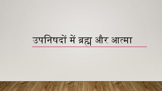 उपनिषदों में बार-बारआत्मा शब्द हमें प्राप्त होता है। 'आत्मा वा अरे श्रोतव्यो, मनतव्यो,