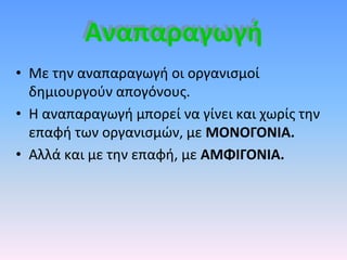 • Με τηναναπαραγωγή οι οργανισμοί