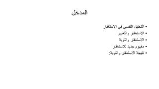 الاستغفار هو طلب المغفرة من الله عن الذنوب ويعبر عن العفو والمسامحة، ويتطرق إلى معنى الوقاية من الشر ومحو أثر الذنب. التوبة تعني الرجوع عن الذنب وندم القلب مع العزم على عدم العودة إلى المعصية، وهي تتطلب الجهد الفردي والاجتماعي. الوثيقة تستعرض المفاهيم المرتبطة بالاستغفار والتوبة وتأثيرهما على الفرد والمجتمع وفقًا للتعاليم الإسلامية.