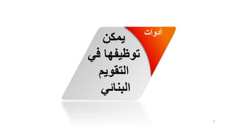 يتعلق هذا الوثيقة بطرق تقييم التعلم وتطبيقات التقويم البنائي، حيث تتضمن أدوات مثل قوائم الرصد والمقاييس والاختبارات التحصيلية لتقييم أداء الطلاب. كما تستعرض الوثيقة خطوات إعداد الاختبارات وتحليل المحتوى لتحقيق الأهداف التعليمية. تُستخدم هذه الأدوات لضمان تقدير دقيق لمستوى الطالب وتحسين جودة التعليم.