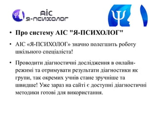 • АІС «Я-ПСИХОЛОГ» значно полегшить роботу