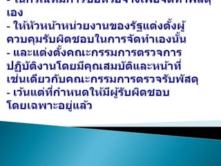 1.ระเบียบกระทรวงการคลังว่าด้วยการจัดซื้อจัดจ้างและการบริหารพัสดุภาครัฐ-2560.pdf Similar to กฎหมายและระเบียบกระทรวงการคลังที่เกี่ยวข้องกับการจัดซื้อจัดจ้าง ฯ.pptx