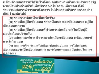(1) การเลือกใช ้วิธีการจัดซื้อจัดจ ้างหรือเกณฑ์ที่ใช ้