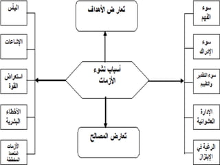 تتناول المحاضرة إدارة الأزمات واستراتيجيات القيادة الفعالة خلال الظروف الصعبة مثل أزمة كورونا. تركز على أهمية التخطيط المسبق، والتنبؤ، وبناء الثقة بين الفرق، وتقديم الحلول الإبداعية. كما تستعرض الفرق بين الأزمة والمشكلة وتسلط الضوء على كيفية إدارة الأزمات لتحقيق الأهداف المنشودة.