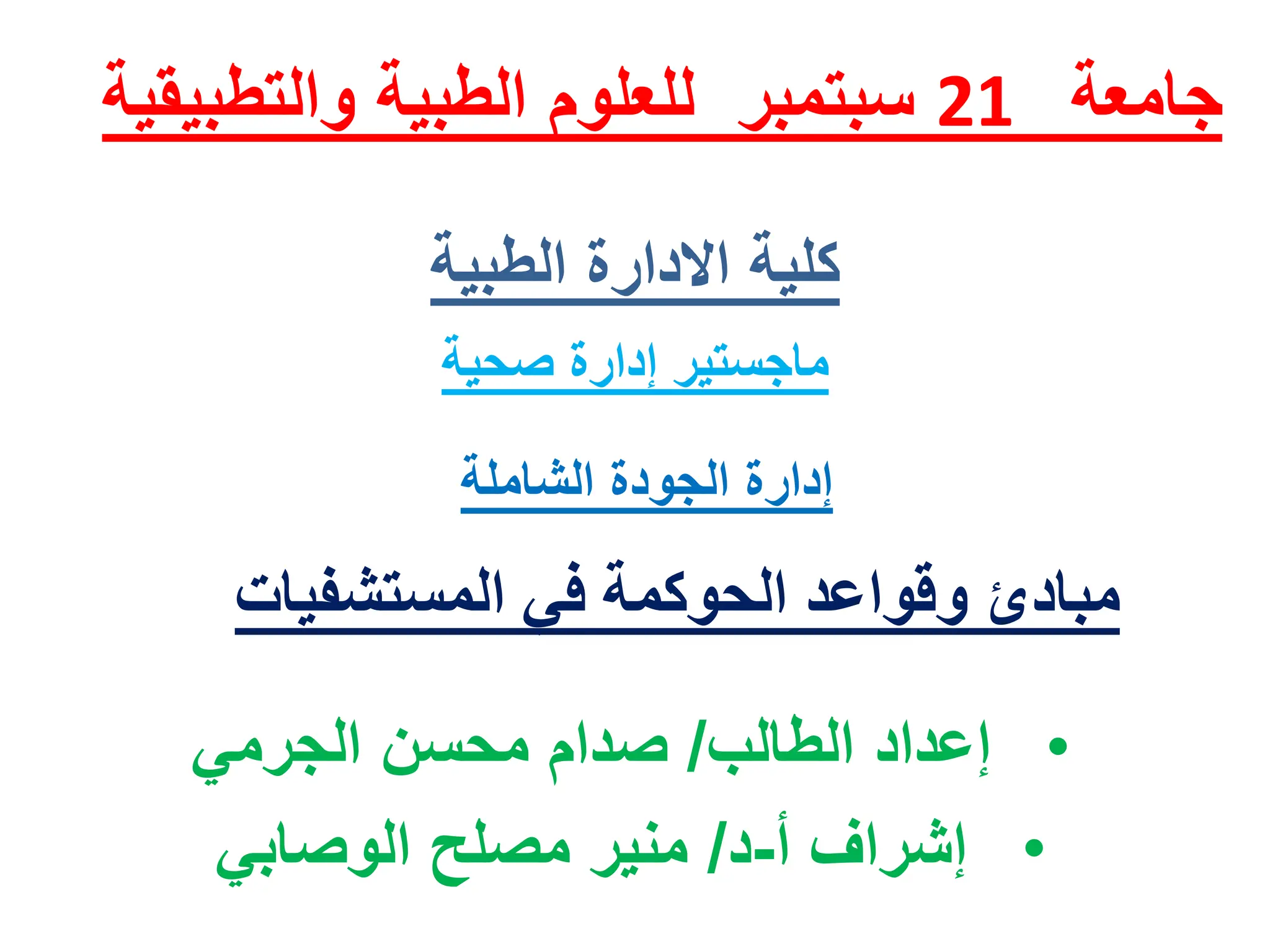 يتناول المستند مفهوم الحوكمة في إدارات المستشفيات وأهم مبادئها كالإستراتيجية الواضحة، الشفافية، والعدالة. يبرز أهمية تعزيز الثقة والمصداقية في بيئة العمل، ويدعو إلى تحسن الأداء المؤسسي من خلال المشاركة وتوفير المعلومات. يُشير أيضًا إلى التحديات التي قد تواجه تطبيق الحوكمة الرشيدة ويقترح استراتيجيات لتعزيز المساءلة والشفافية.