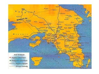•Το έδαφοςτης Αττικής ήταν κυρίως ορεινό με μικρές και φτωχές πεδιάδες.