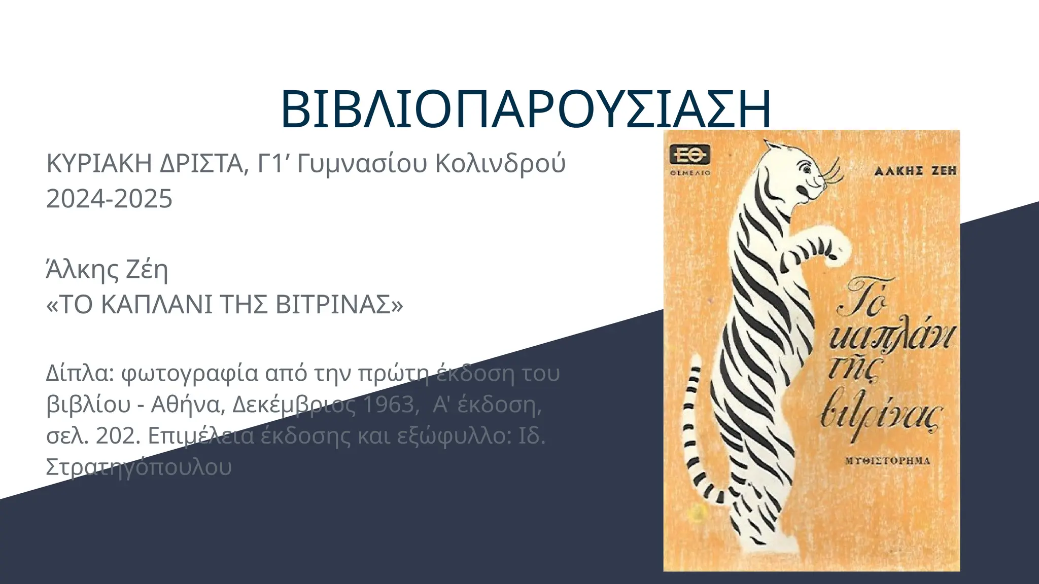 βιβλίου - Αθήνα, Δεκέμβριος 1963, Α' έκδοση,
