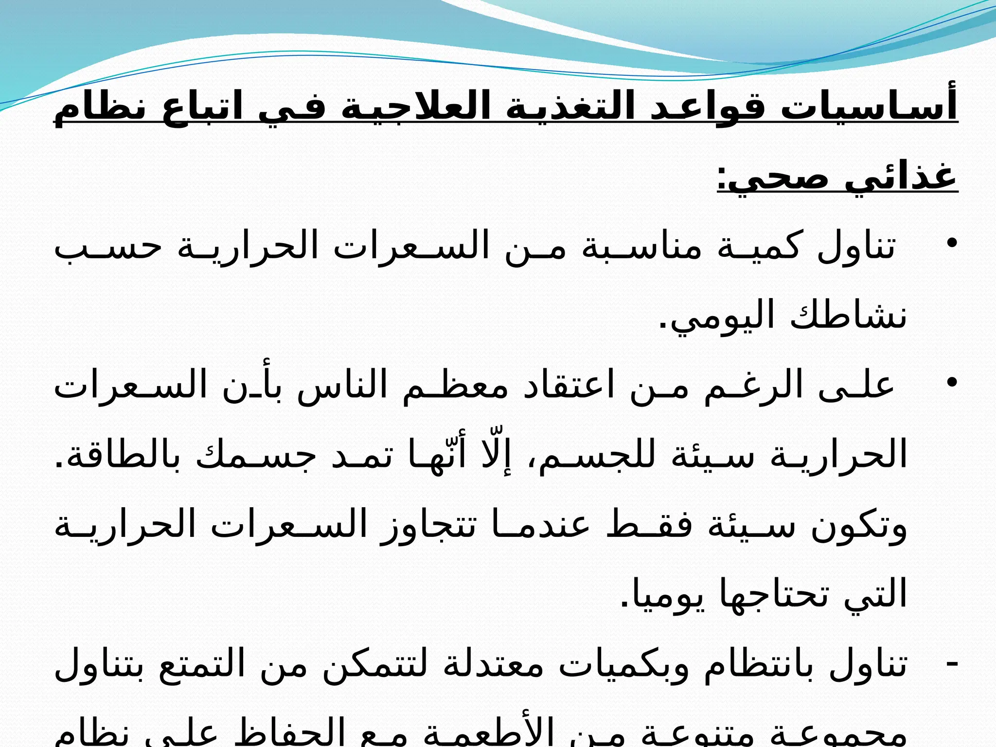 نظام اتباع يف ة العالجي ة التغذي د قواع اسيات أس