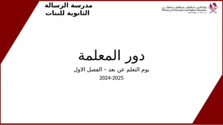 يتعلق المستند بدور المعلمات في مدرسة البنات الثانوية خلال الفصل الدراسي الأول من العام 2024-2025، ويشير إلى أهمية تكريم المعلمات وإدارة الحضور. يتضمن المحتوى أيضًا معلومات حول المكافآت المخصصة للمعلمات حسب ساعات الحضور. الوثيقة تؤكد على الالتزام برفع مستوى التعليم والتقدير للجهود المبذولة من قبل المعلمات.