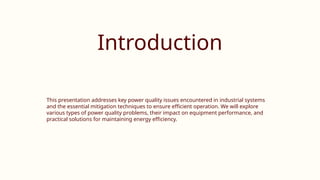 This presentation addresseskey power quality issues encountered in industrial systems