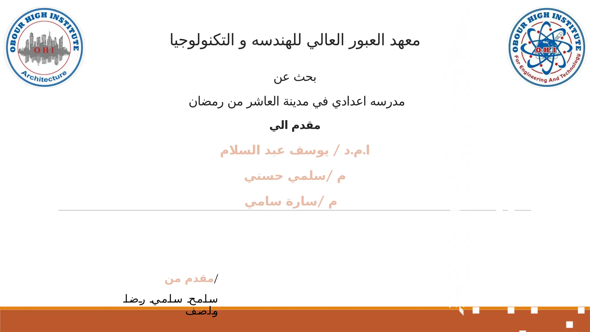 العالي العبور معهد عن بحث رمضان من العاشر مدينة في اعدادي مدرسه الي مقدم / . . السالم عبد يوسف د م ا / حسني سلمي م / سامي سارة م من مقدم/ #ا#ض#ر #ي#م#ا#س #ح#م#ا#س ف#ص#ا#و