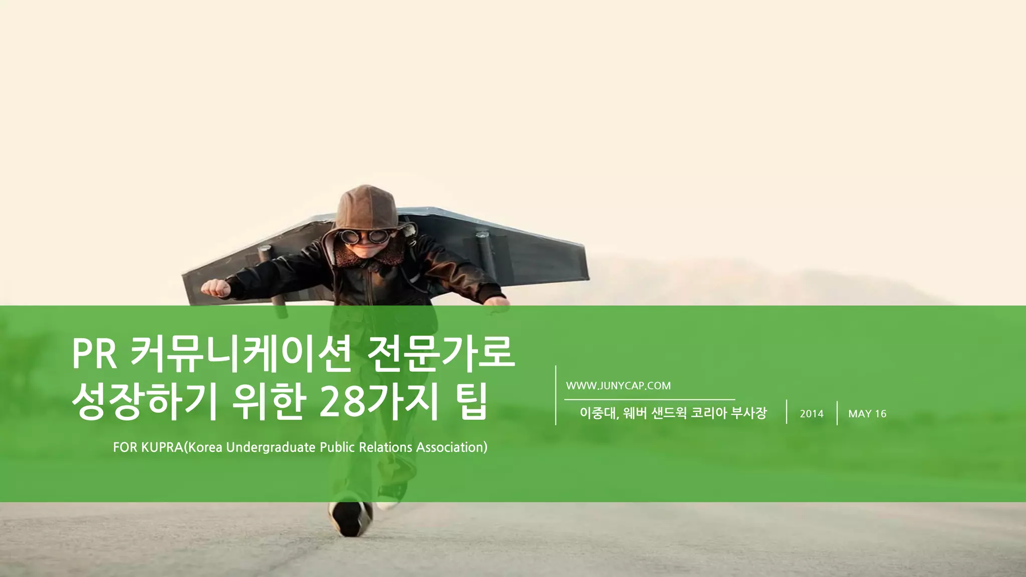 오는 2014년 5월 16일 KUPRA((Korea Undergraduate Public Relations Association, 한국대학생PR 연합회)에서 ‘PR 커뮤니케이션 전문가로 성장하기’라는 주제로 진행한 특강 자료