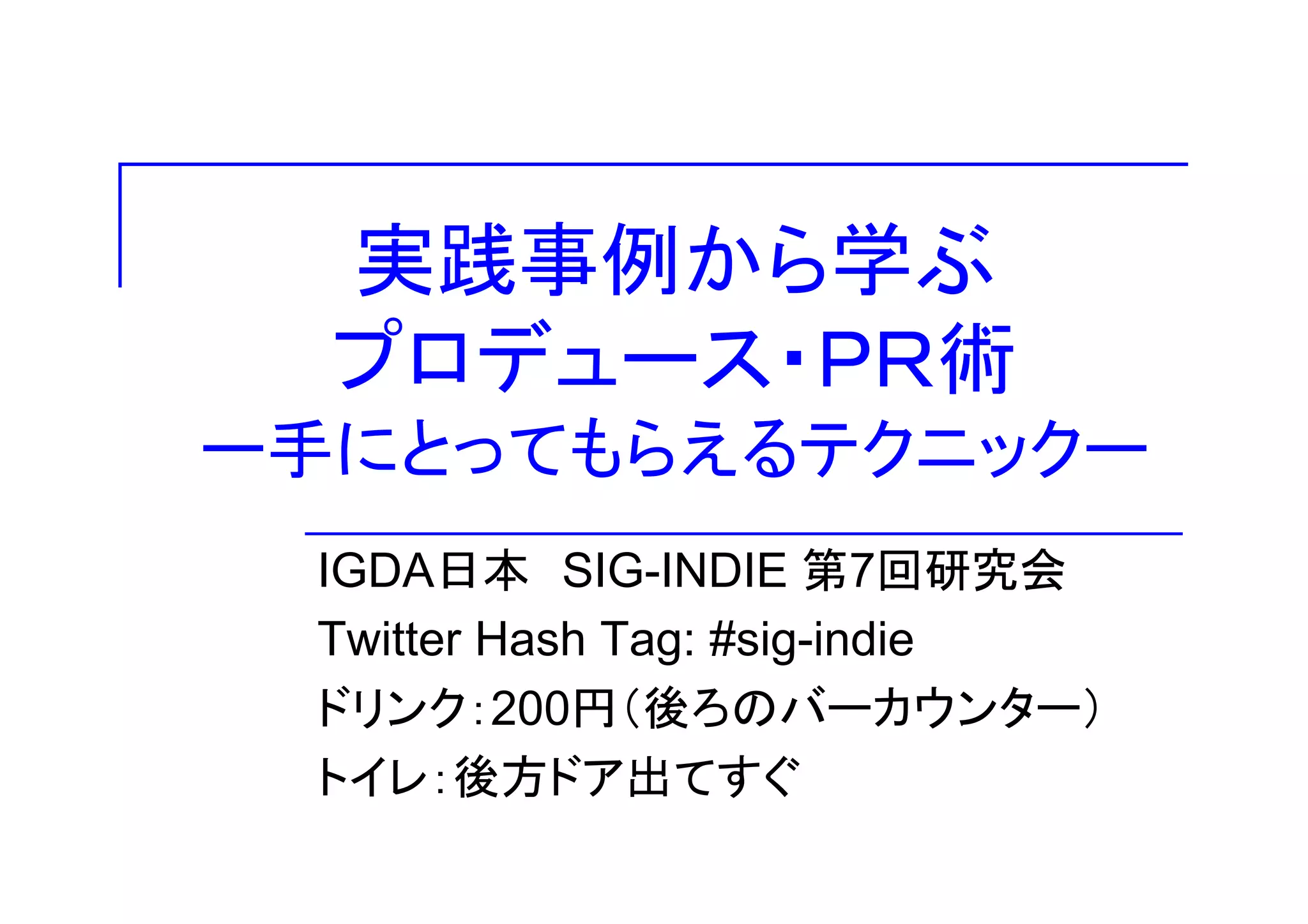 実践事例から学ぶ プロデュース・PR術 ー手にとってもらえるテクニックー IGDA日本 SIG-INDIE 第7回研究会 Twitter