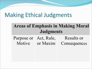 - Kant's deontological view that ethics are absolute and based on universal rules like treating people as ends rather than means. Actions must be universally willable.