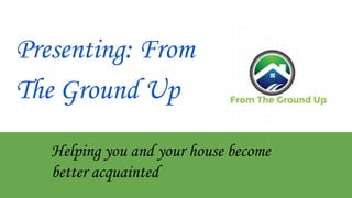 This document outlines a public relations campaign for a nonprofit called "From the Ground Up" which provides exterior home services to senior citizens. The campaign objectives are to raise awareness of the organization and raise $100,000. Strategies include finding a corporate sponsor, using social media and other platforms to inform audiences, and hosting a gala fundraiser. Tactics include creating social media accounts, designing a website, producing posters and press releases, and conducting a radio broadcast. The budget, calendar, and evaluation metrics are also included.