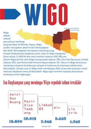 Wigo adalah perusahaan tambang di Papua yang berinvestasi USD 200 juta dan berusaha membangun reputasi sebagai perusahaan ramah lingkungan, dengan rencana ekspansi ke Aceh. Meskipun menghadapi tantangan dari LSM, Wigo menjalankan program CSR dan audit lingkungan untuk memperbaiki citra di media. Strategi komunikasi yang efektif dan keterlibatan dengan pemerintah serta komunitas lokal menjadi fokus utama untuk meningkatkan hubungan publik dan mengurangi dampak negatif.