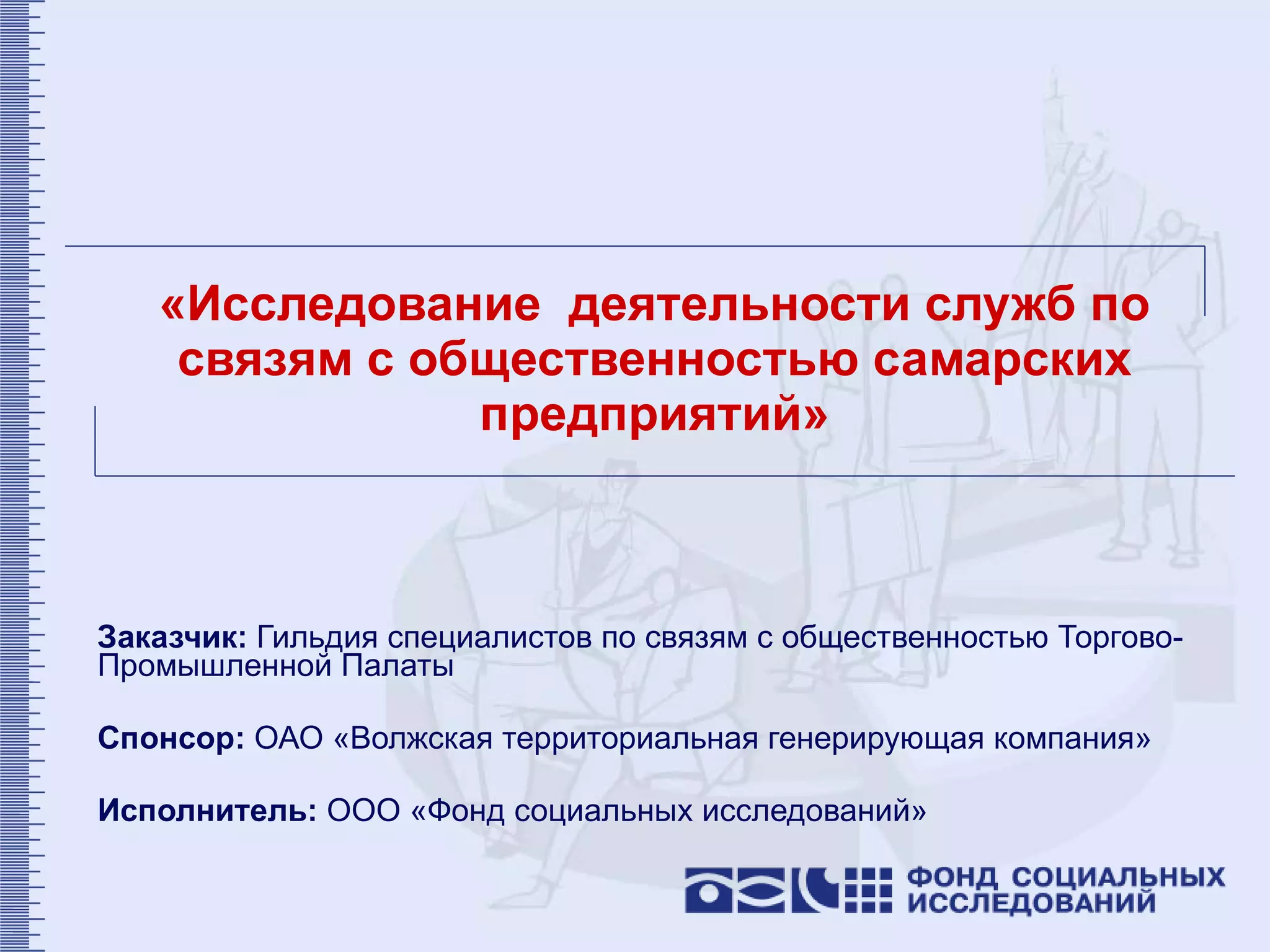Документ представляет результаты исследования восприятия деятельности служб по связям с общественностью (PR) самарских предприятий среди представителей СМИ и PR-специалистов. Основные цели заключались в составлении рейтинга PR-служб, определении лучших PR-проектов и оценке удовлетворенности профессионализмом PR-индутрии в Самаре. Результаты показывают различия в оценках, значимости критериев и общего уровня профессионализма среди экспертов.
