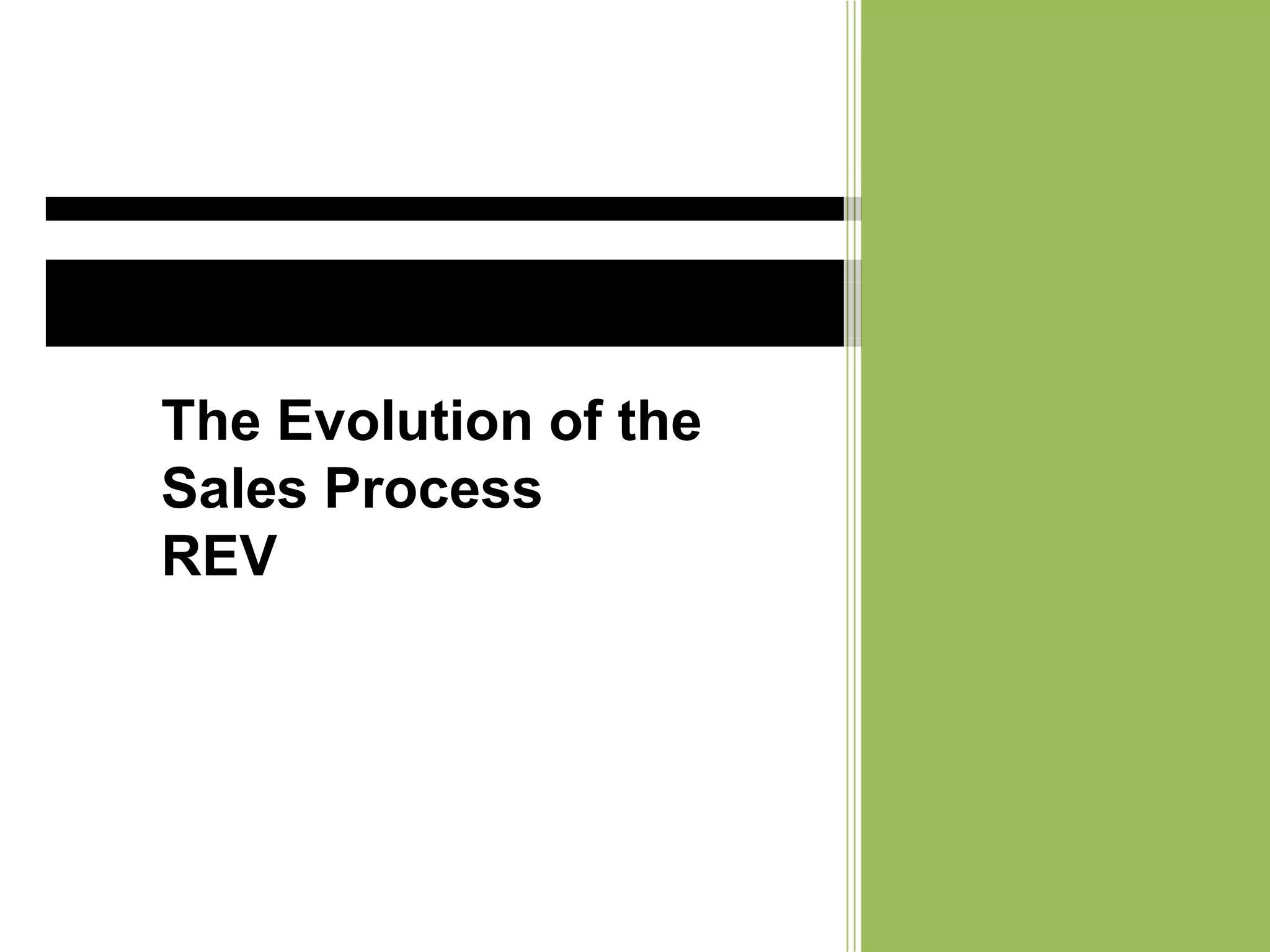 The document outlines an evolved sales process aimed at enhancing the effectiveness of sales consultants through strategic marketing, research, and presentation of a unique point of view (POV). It emphasizes the importance of understanding customer needs, fostering loyalty, and delivering insights rather than just promoting products. Key steps include effectively marketing the POV, engaging in meaningful conversations, and setting clear expectations throughout the sales process.