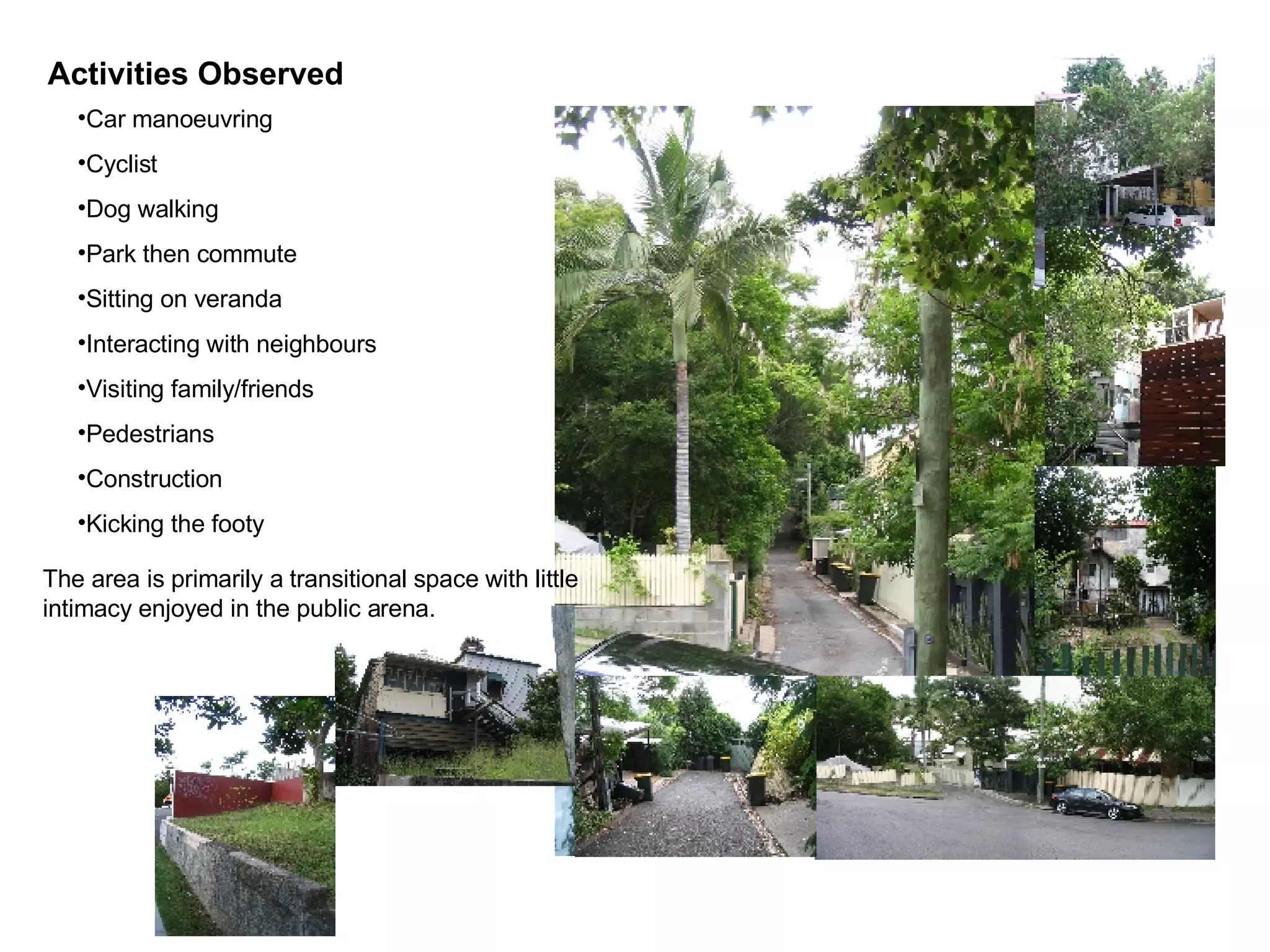 The document discusses noise pollution and its effects. It observes how people use public spaces and the influence of sight, sound, and touch on privacy. While sight and physical boundaries have been reduced, sound still carries into private spaces. The document considers the balance between tolerating undesirable sounds and changing one's environment, using graphical representations of positive and negative noise levels. Data on noise from traffic and trees is presented, showing maximum, minimum and average decibel levels as well as variances.