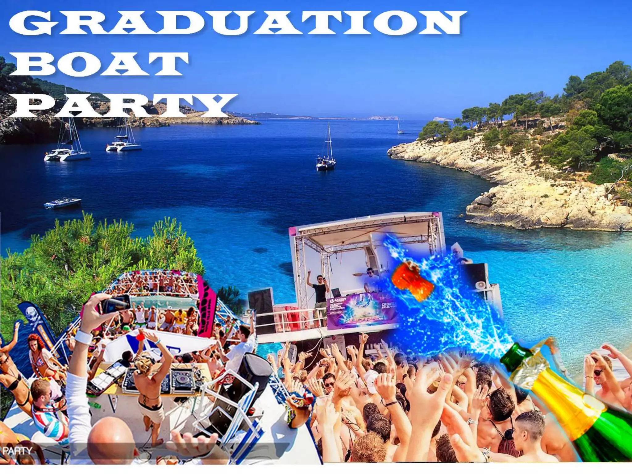 This document provides information about a graduation boat party event taking place on June 14th in Kuşadası, Turkey. It includes details about the event schedule, locations in three bays, activities on the boat including a DJ, dancing and drinks. It also outlines logistics like bus transportation, hotel accommodations, budgets, risks and permissions. The goal is for 150 graduates to celebrate with a boat trip and party.