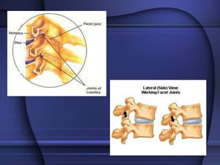 The document discusses the anatomy and biomechanics of the cervical spine. It describes the seven cervical vertebrae, their characteristics, and motion segments. It also covers indications for cervical manipulation, mechanisms of action, and importance of screening for vascular risks prior to cervical manipulation.