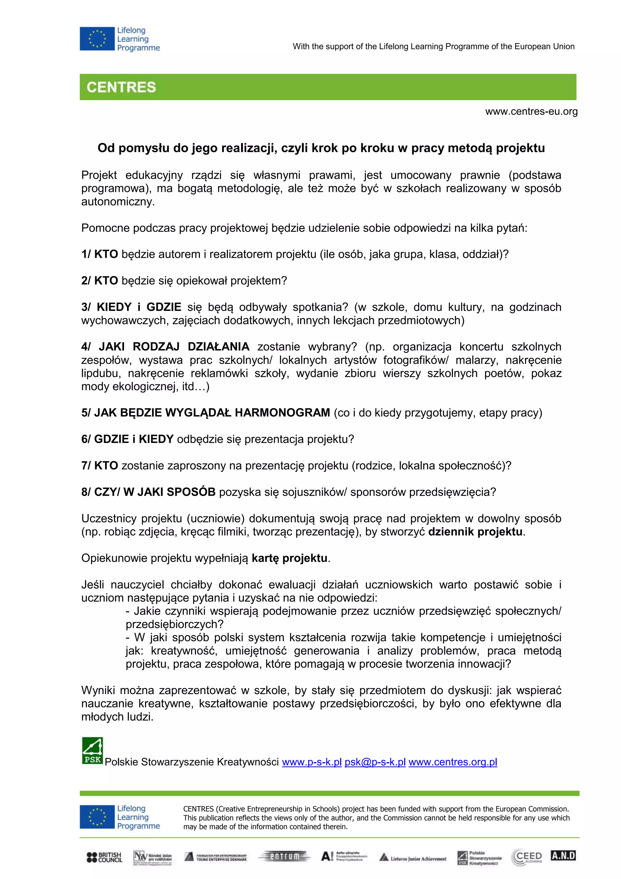 Polskie Stowarzyszenie Kreatywności www.p-s-k.pl psk@p-s-k.pl www.centres.org.pl