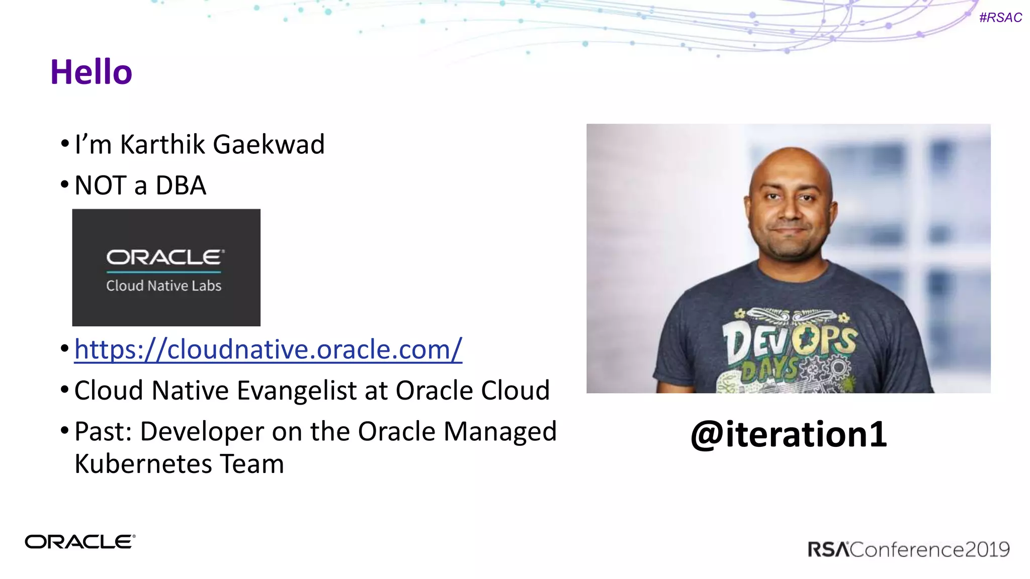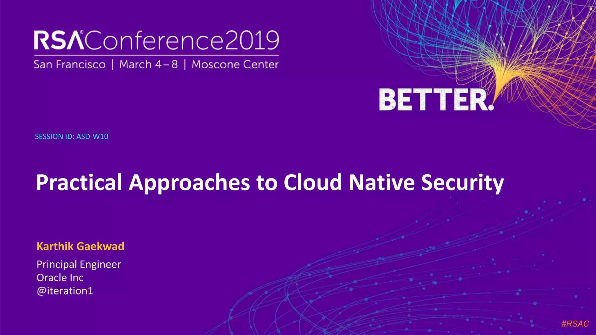 Karthik Gaekwad presented on practical approaches to cloud native security. He discussed reducing the attack surface by securing hosts, container images, and the Kubernetes cluster. He highlighted security features in Kubernetes like secrets, authentication, authorization, audit logging, network policies, and pod security policies. Gaekwad also recommended using open source tooling to help with security and provided examples like Open Policy Agent.