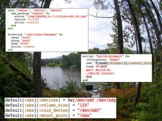Chris Dagdigian discusses the advantages of using AWS for cloud and workflow orchestration in genomics, emphasizing the need for efficient automated provisioning and configuration management to speed up research processes. He highlights tools like Cloud Init and AWS CloudFormation that facilitate infrastructure management and orchestration, making IT infrastructures fully virtual and scriptable. Dagdigian also covers the role of Chef for configuration management and MIT StarCluster for creating Linux compute farms on AWS.