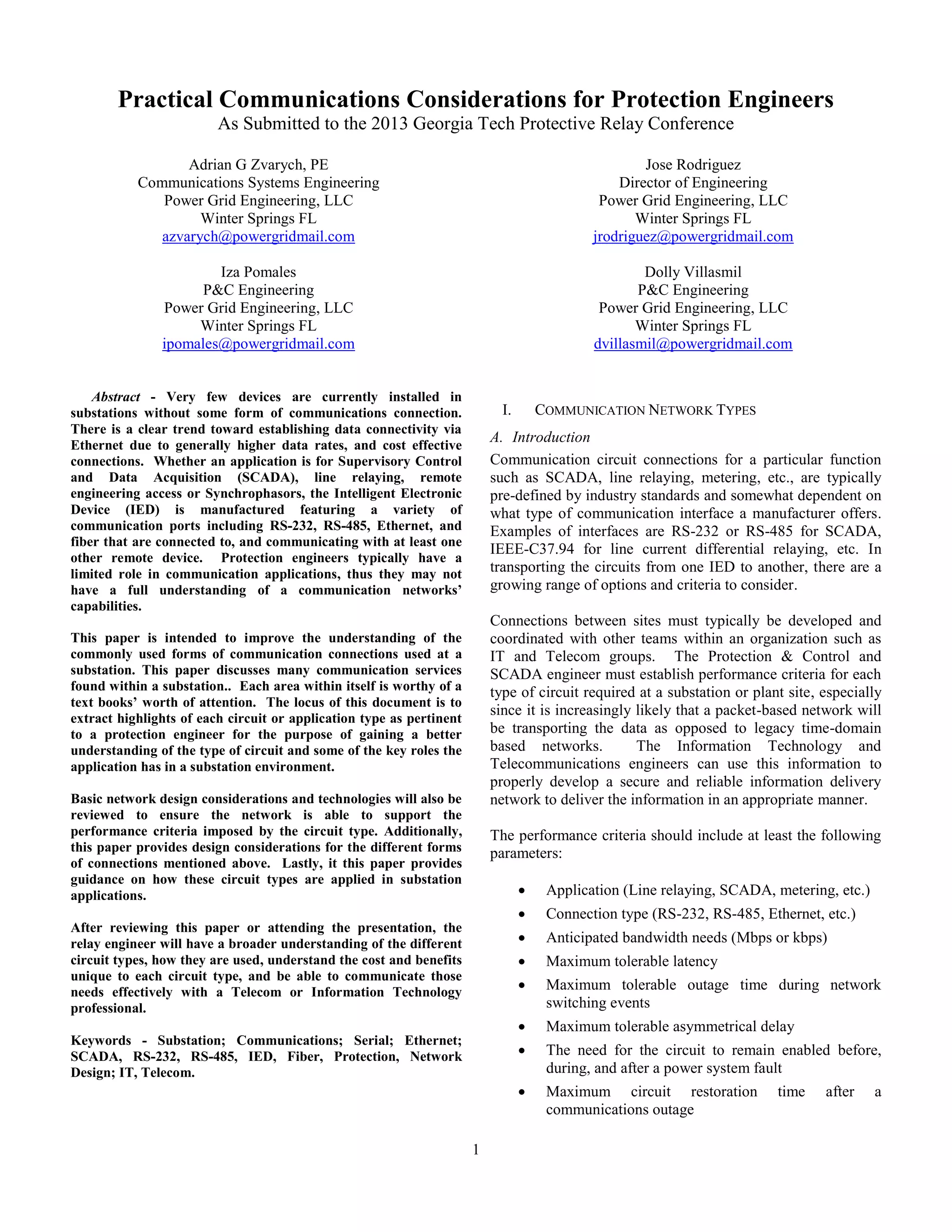 - Communication networks in substations are increasingly using Ethernet and packet-based networks over copper or legacy time-domain systems due to higher data rates and lower costs.