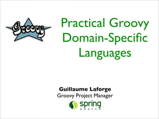 This document discusses Groovy's capabilities for building domain-specific languages (DSLs). It provides examples of how Groovy allows flexible syntax through features like optional typing, closures, builders, and the meta-object protocol (MOP). The MOP allows intercepting method calls at runtime to change behavior. Groovy is well-suited for DSLs as it can seamlessly integrate DSLs into applications and its compiler supports transformations.