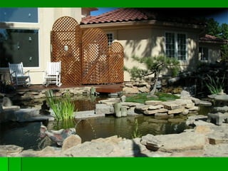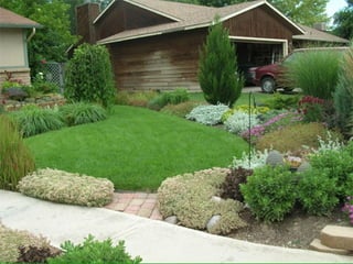 1) Landscape design involves considering the 3D space of a site including floors, walls, and ceilings and determining appropriate functions and themes.