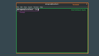 This document provides an overview of a practical Linux workshop led by Arie Bregman, covering the essentials of the Linux operating system, its usage, and basic terminal commands. Participants engage in hands-on practice with commands like pwd, cd, ls, mkdir, and more, while also learning about file manipulation, permissions, and scripting. The session concludes with a final exercise and outlines potential future topics for further exploration in Linux and related technologies.