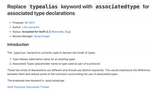 The document discusses protocol-oriented programming in Swift, highlighting the use of protocols with associated types and their applications in model design, storyboards, and networking. It provides code examples demonstrating how to implement and utilize protocols, including mixins and traits, and discusses dependency injection in view controllers. Additionally, it touches on testing strategies for networking services in Swift applications.