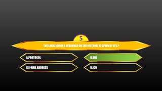 The document discusses how the location of a resource on the Internet is given. The location is given by its URL (Uniform Resource Locator) rather than its protocol, e-mail address, or ICQ. The URL uniquely identifies the specific resource and indicates how to access it over the Internet.