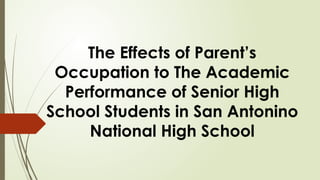 The study explores the effect of Parents' Occupation on Academic Performance of Senior High