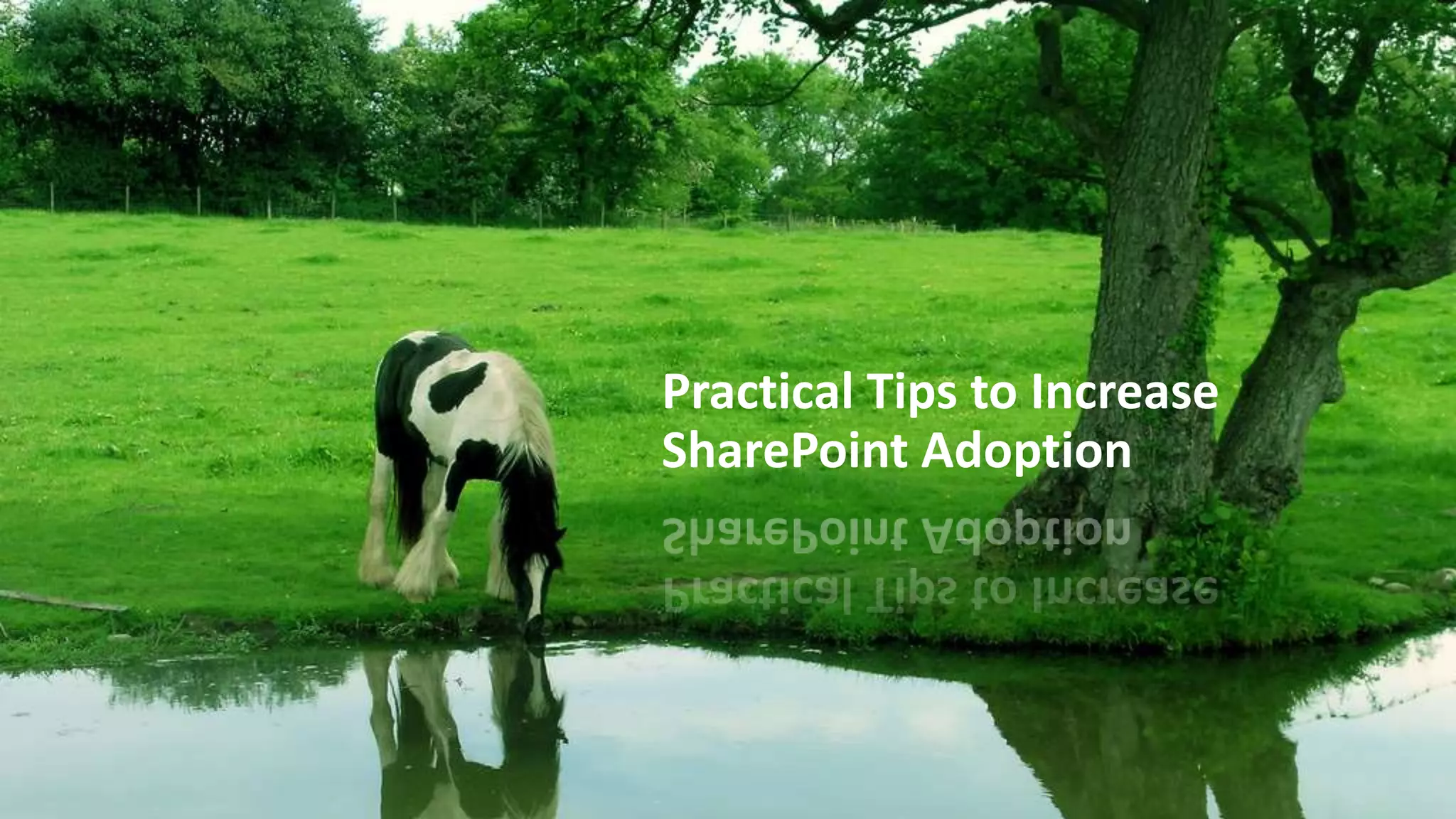 The document provides practical tips to increase adoption of SharePoint, including establishing an adoption strategy, focusing on end user needs, training help desk staff, personalizing the portal experience for users, leveraging champions, and ongoing communication. It emphasizes that adoption requires an active plan and community management over time, and stresses the importance of respecting employees and content in driving engagement.
