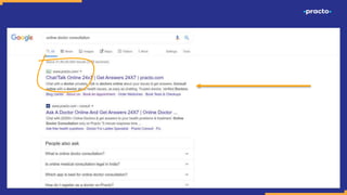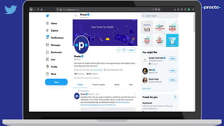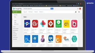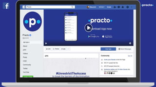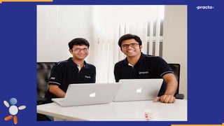 Practo is a digital healthcare platform that connects patients with doctors and healthcare services. It allows users to assess health issues, find and book appointments with doctors, order diagnostic tests and medicines, share health records with doctors, and learn ways to live healthier. For doctors, Practo helps them grow their practice, manage their schedule digitally, and engage with patients. The platform is present in 15 countries and was founded in India in 2008 by Abhinav Lal and Shashank ND to help people make more informed healthcare decisions.