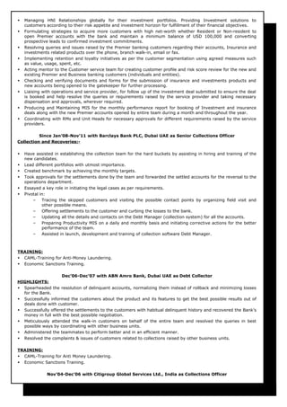 Pradeep Singh has over 9 years of experience in credit evaluation, risk management, collections management, customer relationship management, and team management. He is currently seeking a role in real estate, customer relationship management, or collections management. Pradeep has worked at Emirates Islamic Bank, Investors Lounge Real Estate Brokers LLC, Barclays Bank, ABN Amro Bank, and Citigroup Global Services in roles related to credit, real estate, collections, and customer relationship management. He has a Bachelor's degree in Commerce from Delhi University and a Certificate in Credit Management from the Institute of Bankers.