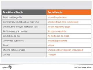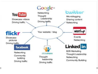 This document provides an introduction to personal branding and using social media. It discusses discovering your unique qualities and communicating them online to highlight your skills, knowledge, credibility and relevance. It also covers confronting the challenges of social media, such as the time investment required. The document then discusses using social media to become a thought leader by consistently sharing fresh, unique and relevant content. It provides guidance on creating a personal branding strategy, including positioning yourself, marketing your brand, and monitoring your online presence.