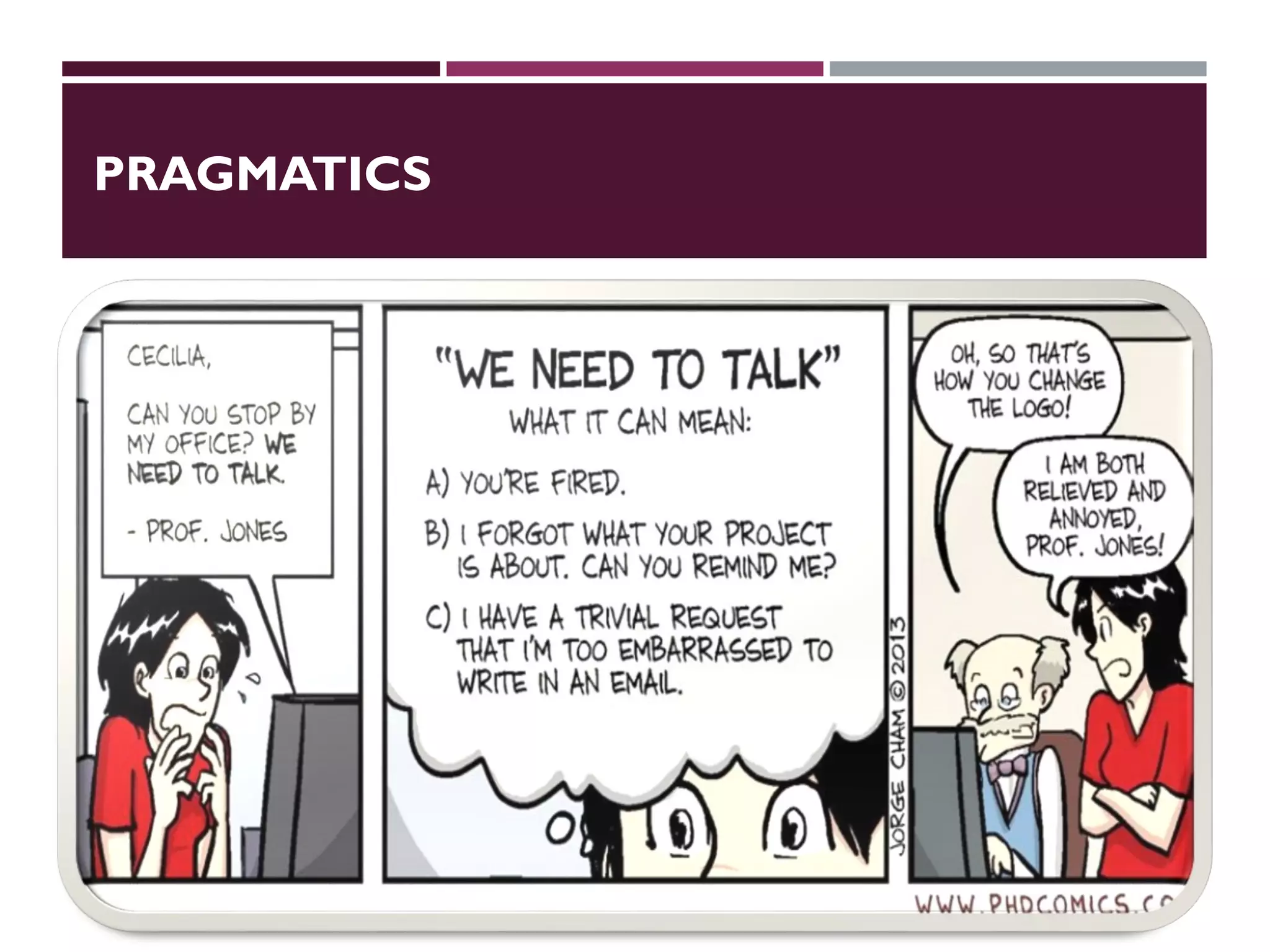 1) The message model, where the speaker encodes a message and the hearer decodes it. This model has problems with ambiguity, reference, intention, nonliteral meanings, and indirectness.
